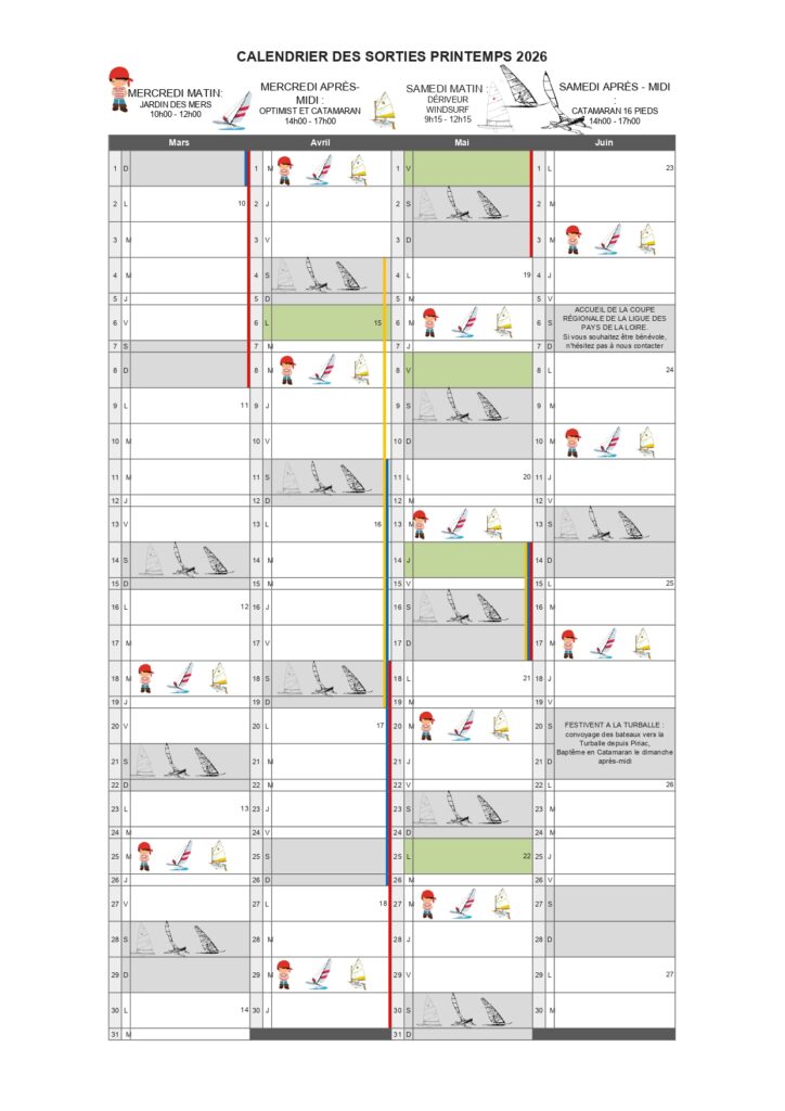 Calendrier des activités à l’année